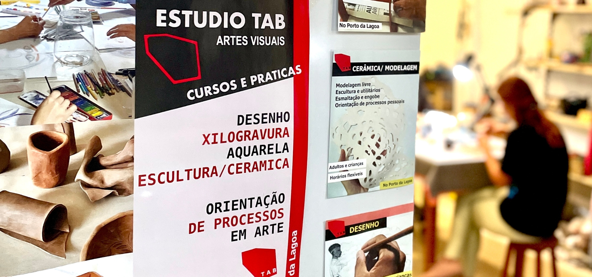 O Estúdio TAB é um espaço criativo e ateliê localizado no Porto da Lagoa em Florianópolis, capital de Santa Catarina que oferece cursos, oficinas, encontros, grupos de estudos e debates em diversas linguagens artísticas.